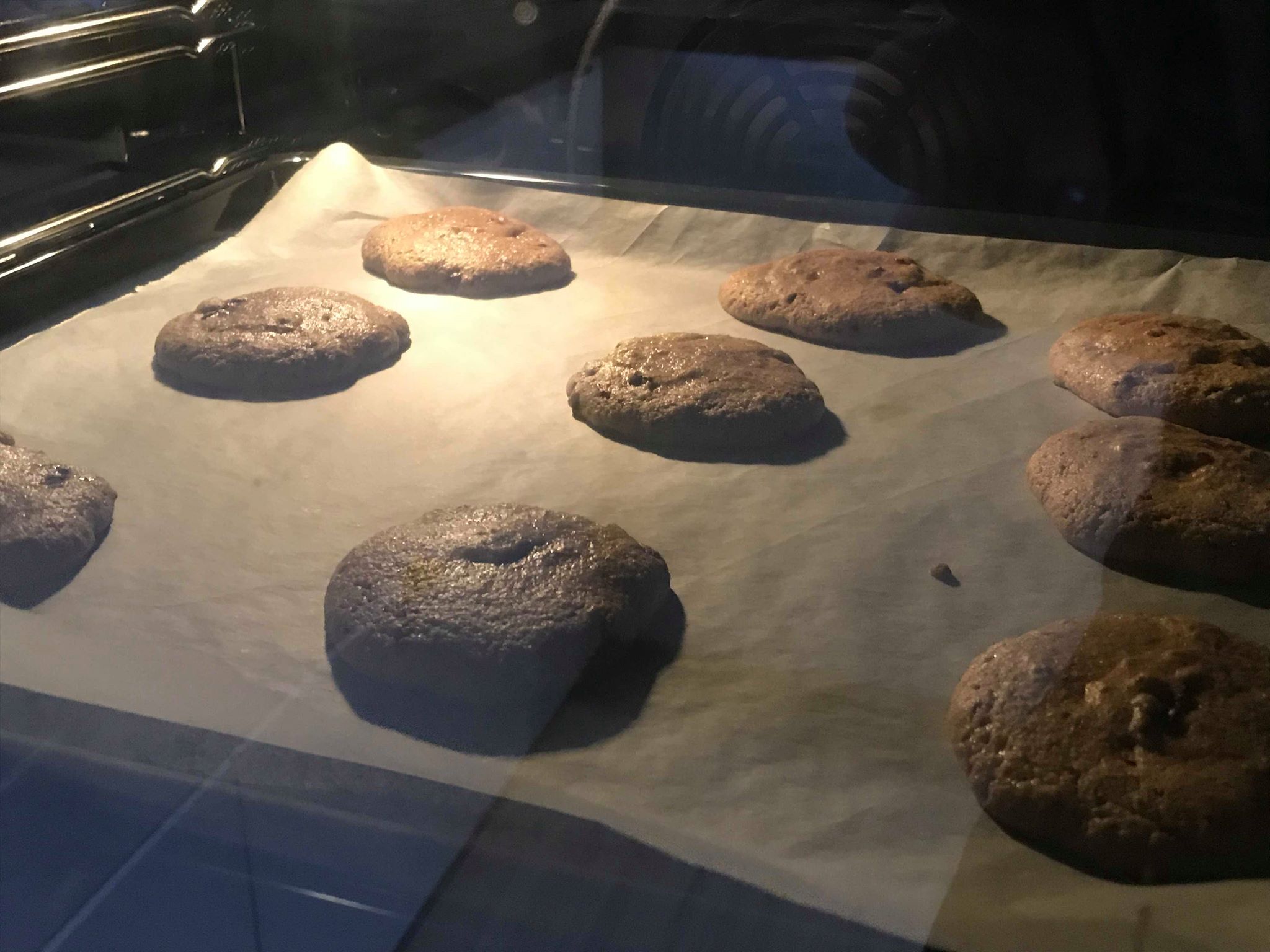 Dejen vil selv flade ud på bagepapiret – hvis du har god tid, kan du med fordel sætte dejen i køleskabet i 30 minutter, så er dejen lidt mere fast og så kan man rulle dejen i hånden. Husk at lave god afstand så de ikke smelter sammen når de kommer i ovnen.