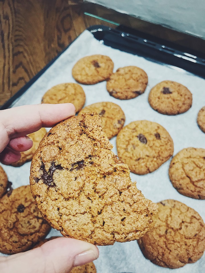 Disse sprøde chokolade cookies er lavet på glutenfri havremel og man kan virkelig ikke smage at de er glutenfri, de er simpelthen så gode! De indeholder dog sukker og brun farin, man kan muligvis godt erstatte det med kokossukker eller sukrin gold, men det er ikke noget jeg har testet endnu.