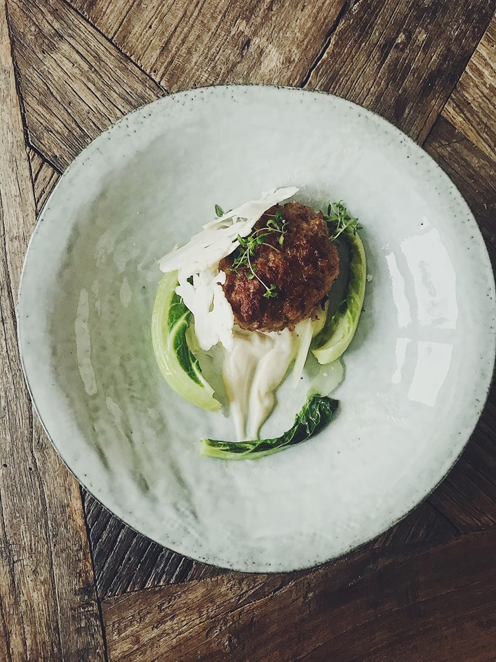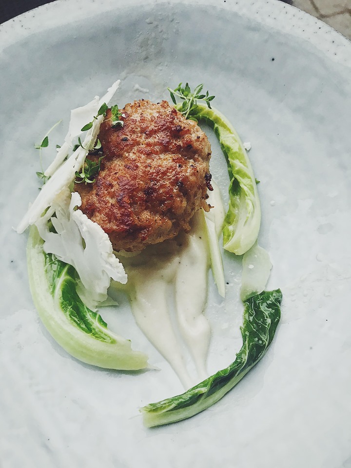 Idag skal jeg lave frikadeller med en glat blomkålspuré, blomkålscrudité og blanceret blomkålsblade – alt sammen på 1 enkelt blomkål. En ret som både er billig, smagfuld og virkelig pæn.